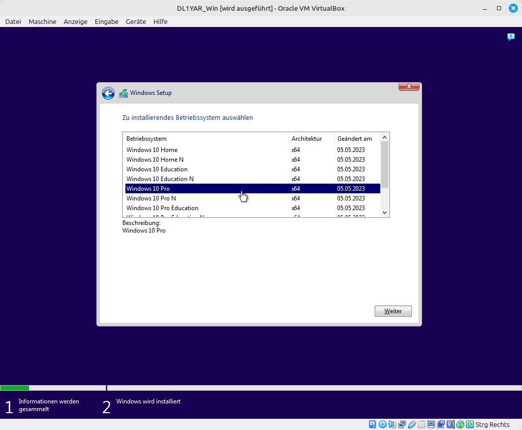 sehen wie das System erstellt werden kann. Jetzt fängt die Windowsinstallation an. Die Windows-installation ist eigentlich selbsterklärend. Wenn wir zwischendrin nach der Version gefragt werden,wählen wir entsprechend dem Bild