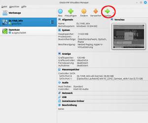 Wenn das alles installiert ist starten wir Windows in der VirtualBox über den Startpfeil